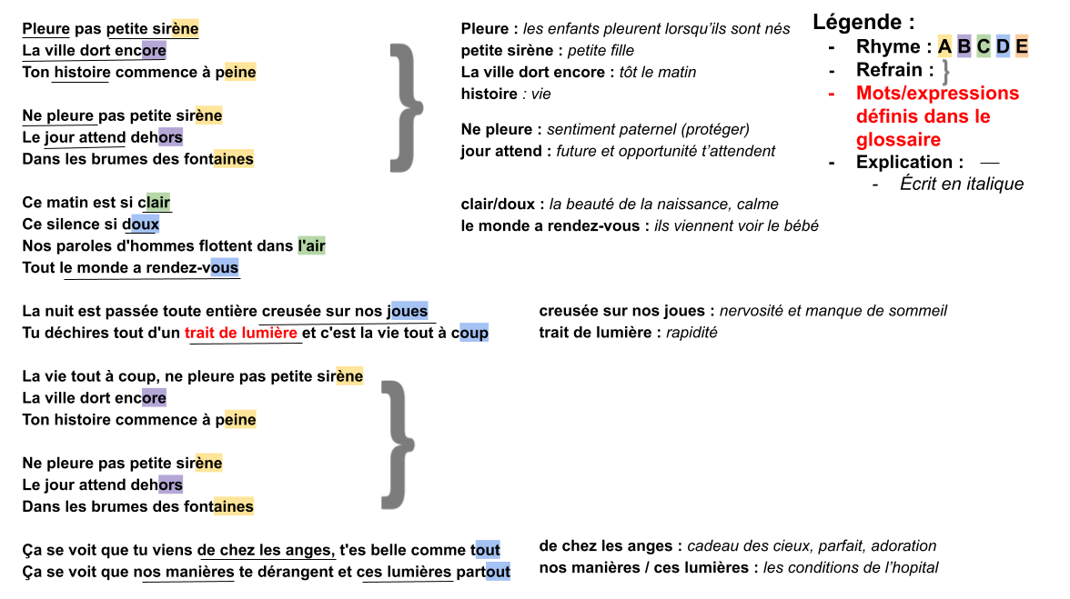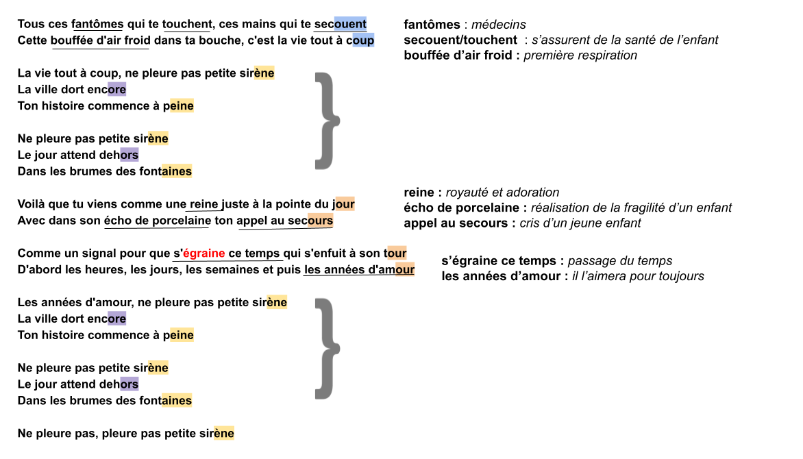 La chanson Petite sirène parle de la naissance d'une petite fille de la perspective du père. Il parle de l'amour qu'il tient pour son bébé et de la volonté de la protéger du monde. Cette chanson développe l'idée du sentiment paternel envers un enfant et la compréhension de sa fragilité. Il parle du miracle et de l'expérience de la naissance de sa fille et du temps qui passe rapidement.